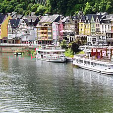 At either end of the Mosel Valley are the cities of Trier and Koblenz with many choices for further journeys. From Zell's local station Bullay, RE and RB trains along the Mosel line take just 45 to 65 minutes to reach either city.